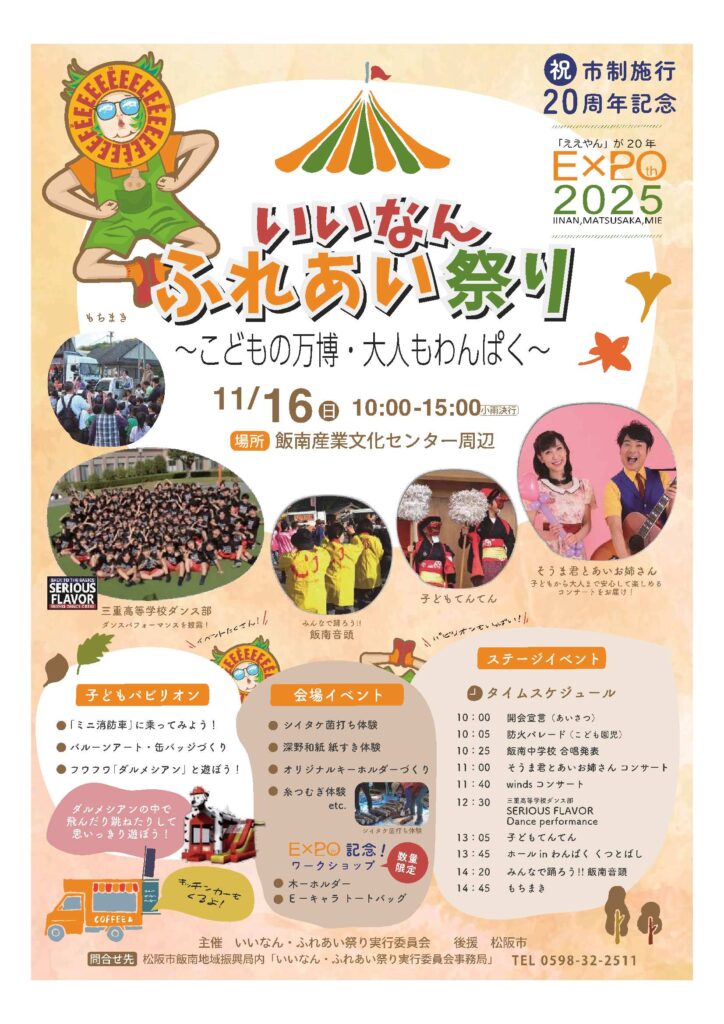合併20周年目の記念すべき開催となる今年は、「”ええやん”が20年 ~こどもの万博・大人もわんぱく~」というテーマのもと、地域の未来を担う子どもたちがたくさん来ていただける、賑やか、華やかなものになるよう企画しています。