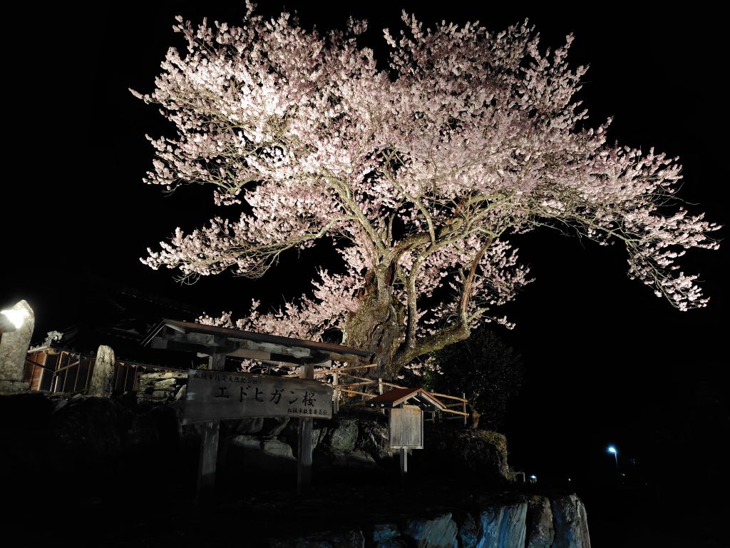 春谷寺(しゅんこくじ)のエドヒガン桜が、例年より早く3月15日(日)の時点で咲き始め、22日(日)に満開となりました。ライトアップも19時から21時まで行われています。淡いピンクの花を咲かせる推定樹齢400年の桜、ぜひご覧ください!